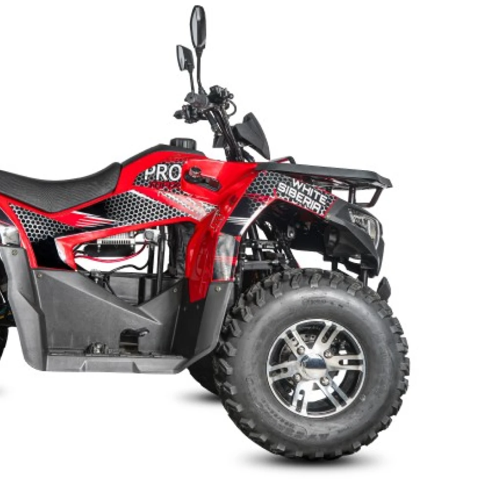 Электроквадроцикл WHITE SIBERIA SNEG PRO MAX 6000 W – супермодель с современной подвеской независимого типа (рычажной) и балкой, которая регулируется понравилась райдерам высоким качеством сборки. Техника устойчива на дороге благодаря четырем оригинальным колесам (23*7,0-10 (180/90-10) и 22*10,00-10 (250/60-10) и идеальному весу 263 кг.