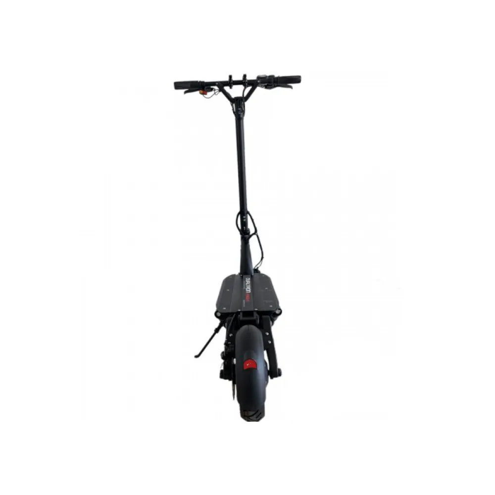 Электросамокат идеально подойдет для передвижения тротуарам и паркам с асфальтированным покрытием. Модель оснащена двумя двигателями мощностью 800 Вт каждый и аккумулятором литий-ионного типа емкостью 18400 мАч, что позволяет совершить поездку на расстояние до 80 км, при движении с максимальной скоростью 75 км/ч. Время поездки может быть увеличено в разы при уменьшении скорости движения.