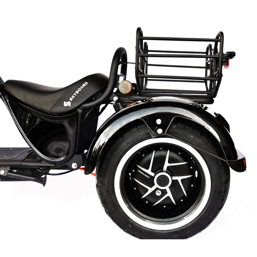 Трехколесный гибрид рассчитан для езды в пределах города и частного сектора. При мощности мотор-колес в 2000 Вт каждое модель способна развить скорость до 73 км/час и преодолеть расстояние до 49 км. Техника оснащена объемной корзиной, удобной для клади. Своевременность остановки гарантирована наличием профессиональной гидравлической тормозной системой. Удобство движения обеспечены большим комфортабельным седлом, повторяющим анатомические части тела и широкой платформой для ног. Практический опыт пользователей доказывает, усталость и проблемы с позвоночником при дальней езде исчезают.