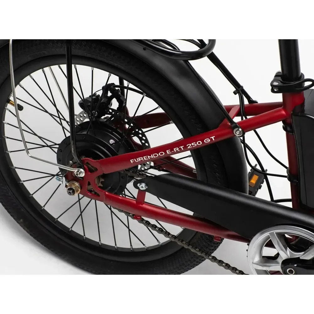 Оформите предзаказ на электровелосипед FURENDO E-RT 250 GT в нашем интернет-магазине со 100% предоплатой и мы доставим его вам бесплатно в любой регион России. С его помощью вы сможете легко отказаться от личного или общественного транспорта, ведь устройство отлично маневрирует в условиях больших мегаполисов с максимальной скоростью до 28 километров в час с мощным двигателем в 350W. Небольшой электрический велосипед можно на ночь убирать в квартиру, чтобы не занимать парковочное место, тем более, что он заряжается всего за 7 часов.