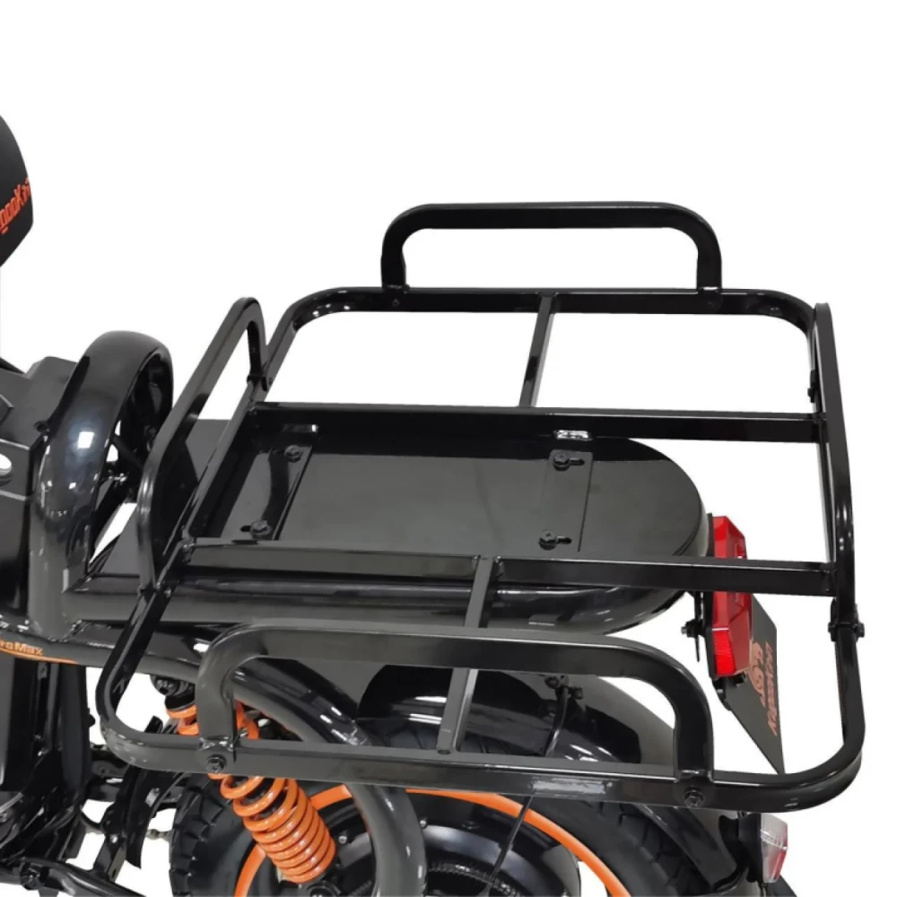 Прочный багажник идеально подходит для курьеров и перевозки личных вещей.