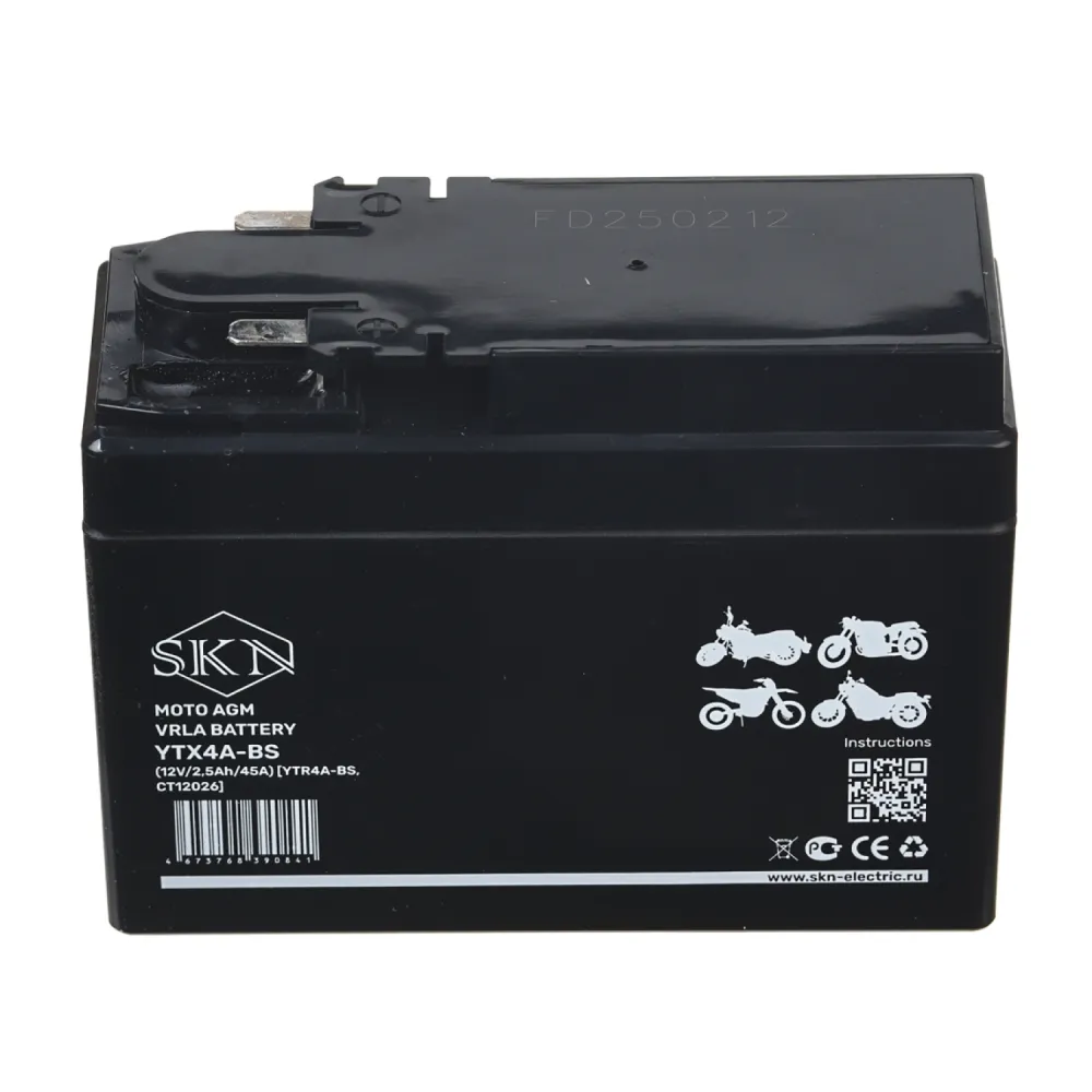 Аккумулятор стартерный для мототехники SKN YTX4A-BS (12V/2,5Ah/45A) [YTR4A-BS, CT 12026]