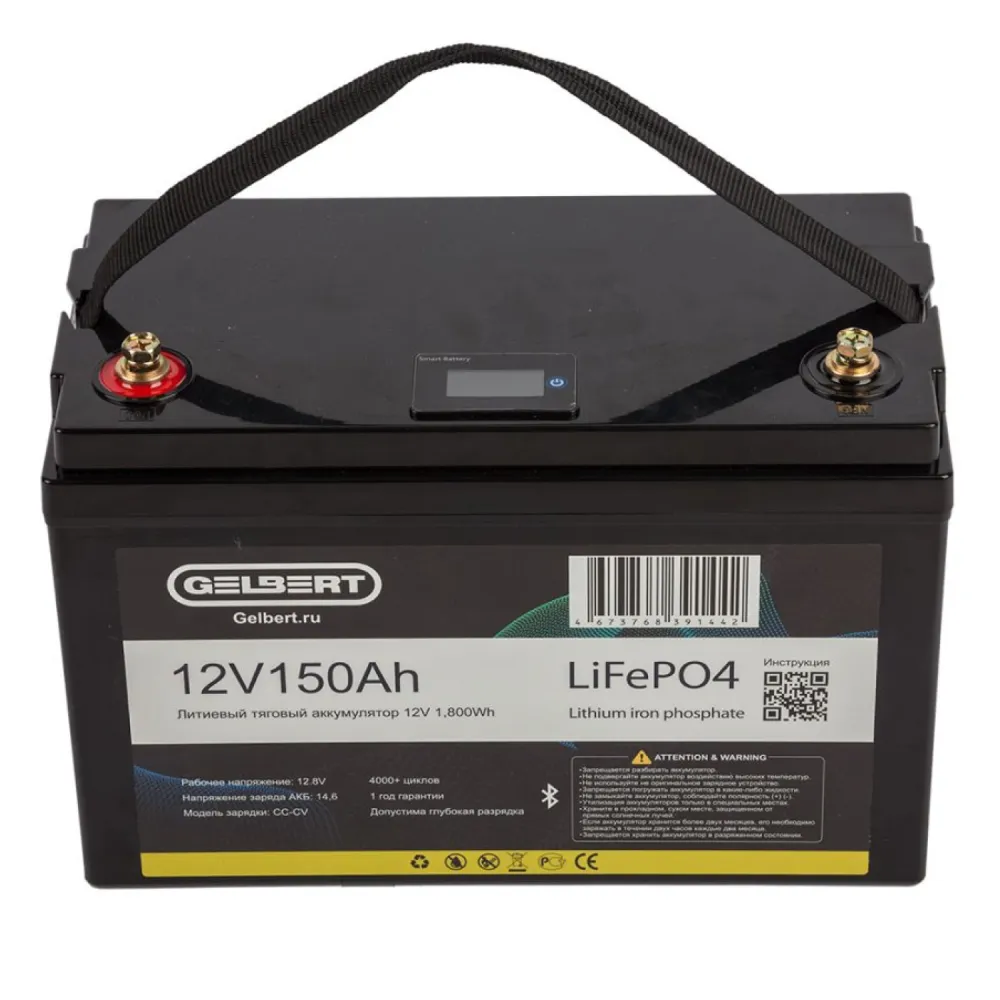 Литиевый тяговый аккумулятор Gelbert LiFePO4 (12V/150Ah/150А/1,800Wh) [6-EVF-150] Bluetooth