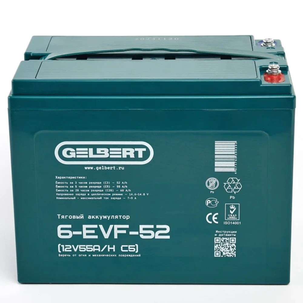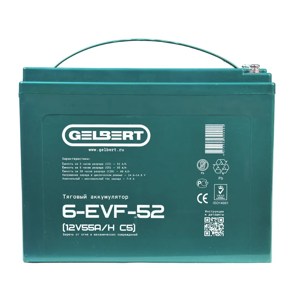 Тяговый аккумулятор Rutrike Gelbert 6-EVF-52 (12V55A/H C5)